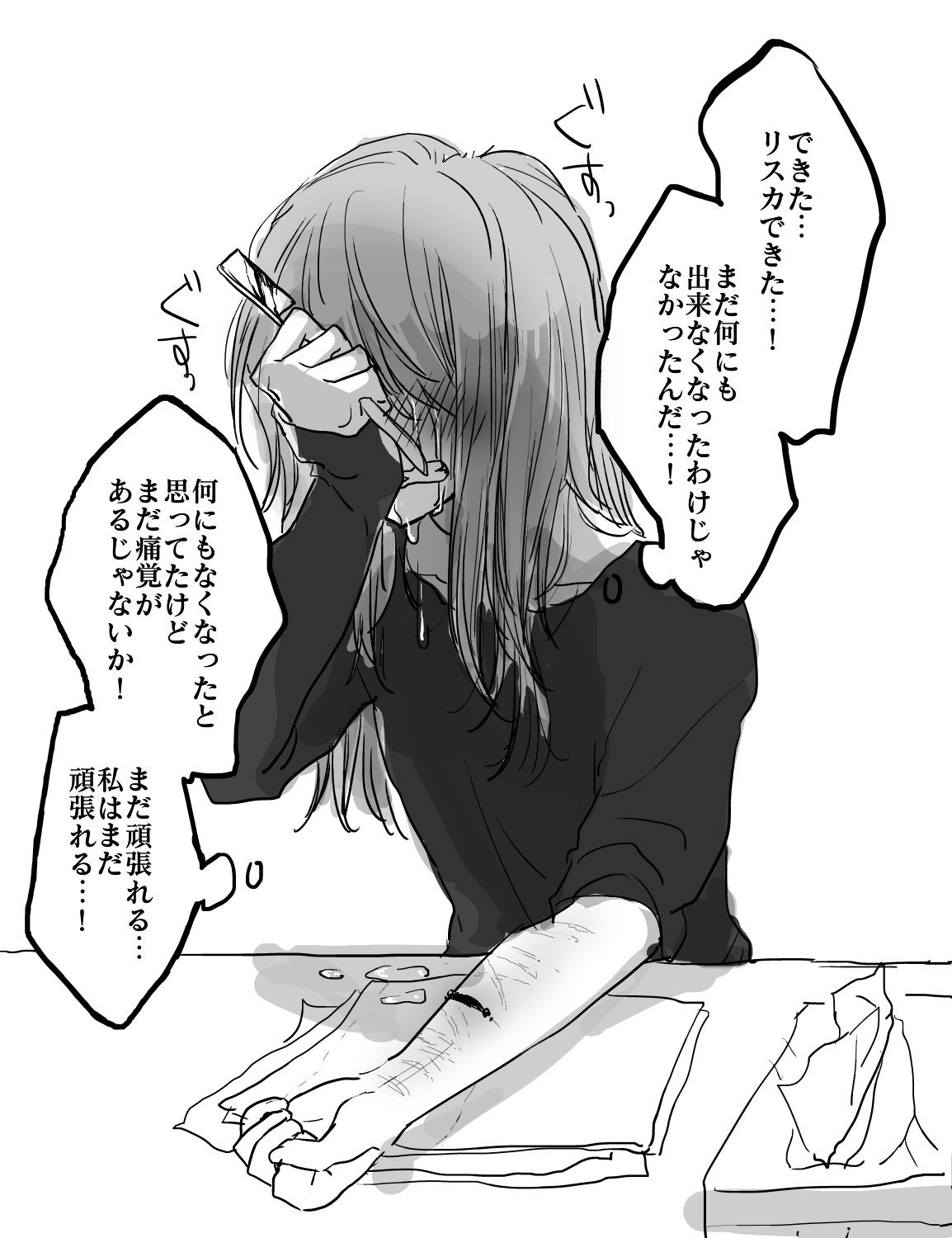 あおや على تويتر リスカイラスト注意 トイレ以外布団から出られない日々が続き 何とか元気を振り絞ってようやく起き上がれた日